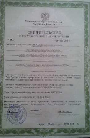 | Адрес местонахождения образовательной организации* | 368344, республика Дагестан, Гунибский район, село Хутни |